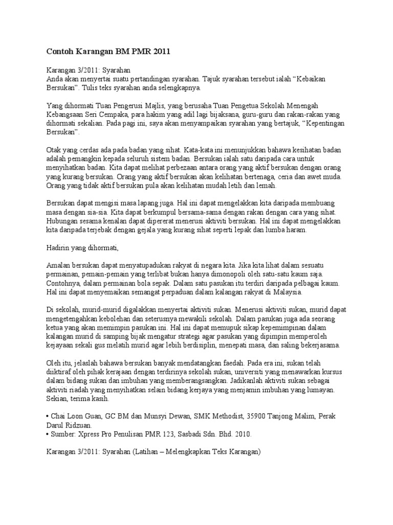 Contoh Karangan Bm Pmr 2011 Pdf