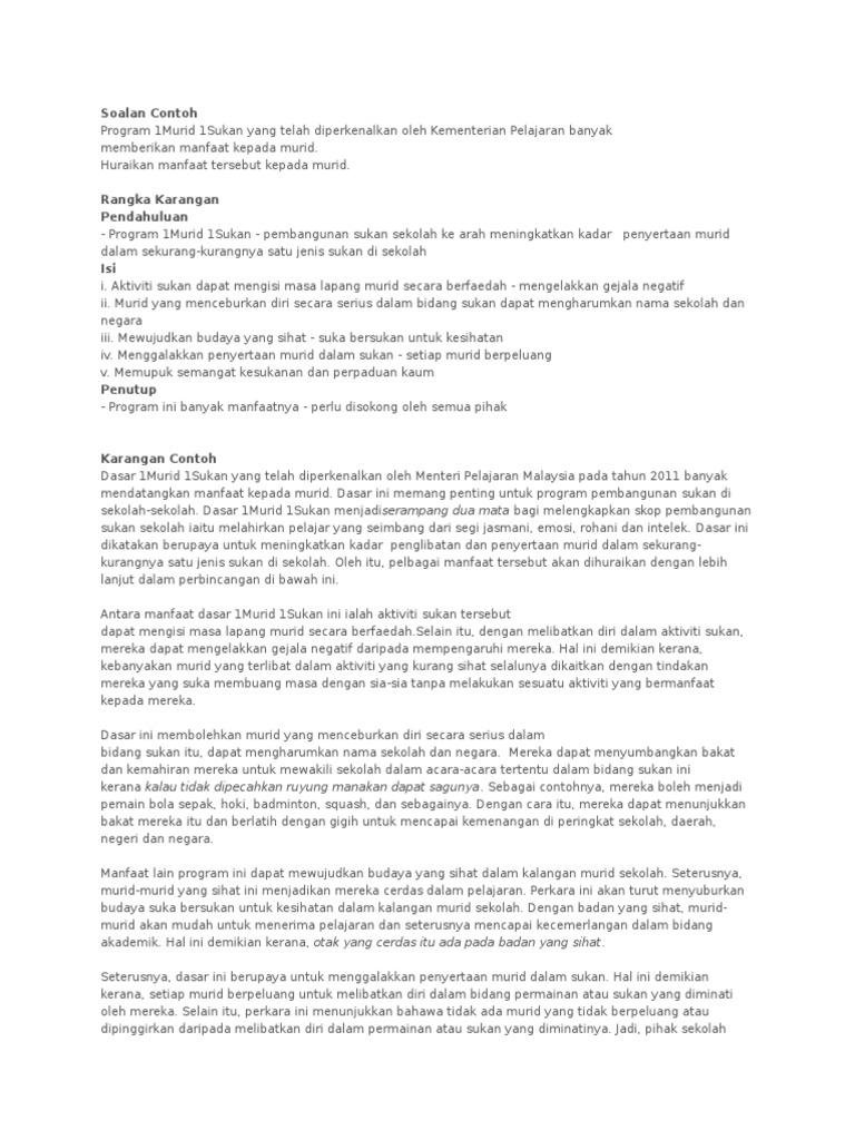 PROGRAM 1 MURID 1 SUKAN. Contoh Karangan Amalan Menabung. Karangan pmr faedah bersukan.