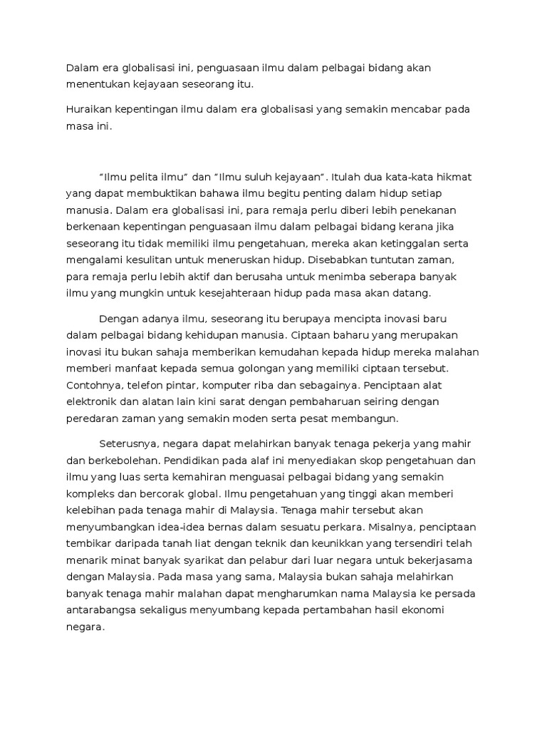 Kepentingan Ilmu Pada Era Globalisasi Ini Pdf