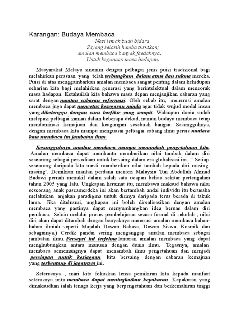 Isi penting karangan spm 2012 1. Amalan membaca masih kurang diamalkan____ kalangan ____ kita. Karangan SPM Kepentingan Amalan Membaca.