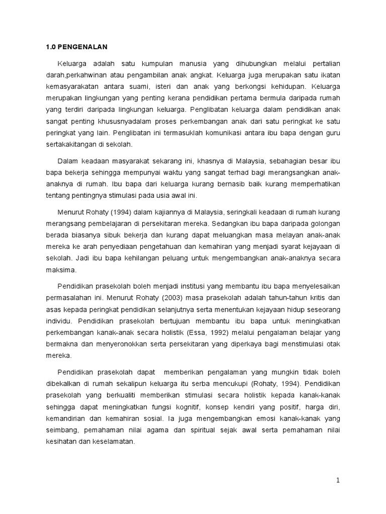 Penglibatan Keluarga Dalam Pendidikan Awal Kanak Kanak Pdf
