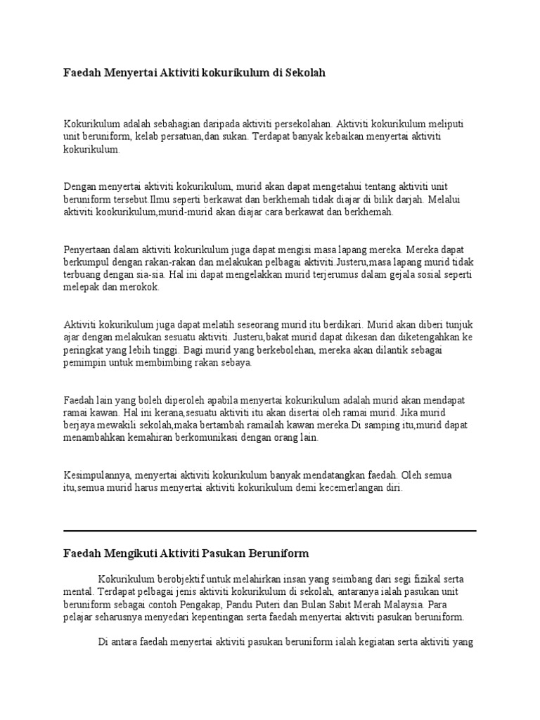 Faedah Menyertai Aktiviti Kokurikulum Di Sekolah Pdf