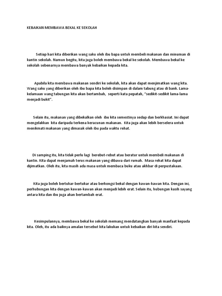 Kebaikan Membawa Bekal Ke Sekolah Pdf