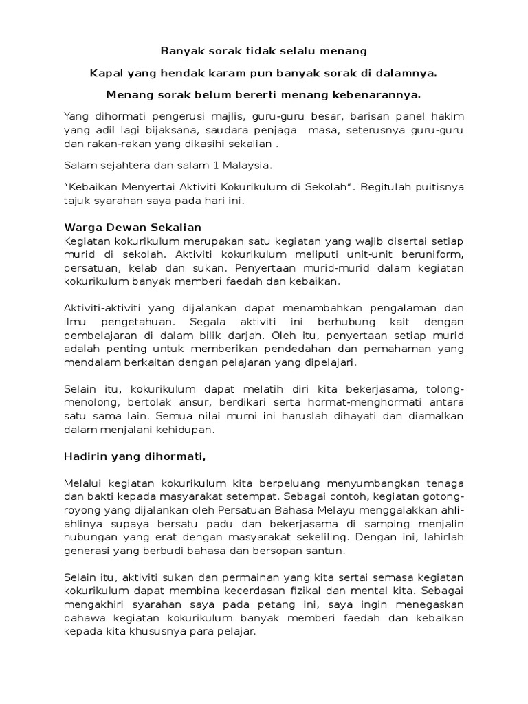 Kebaikan Menyertai Aktiviti Kokurikulum Di Sekolah Pdf