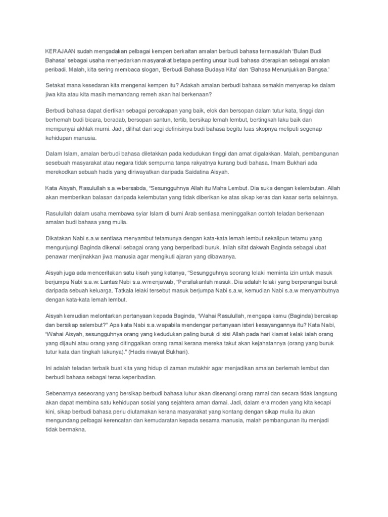 Hal ini kerana individu yang berbudi bahasa sentiasa lemah lembut dan bersopan santun dalam pertuturan dan perlakuan. Contoh Karangan Faedah Amalan Rumah Terbuka. Dalam arus kemodenan ini amalan bersopan santun mula terhakis dalam diri generasi muda.