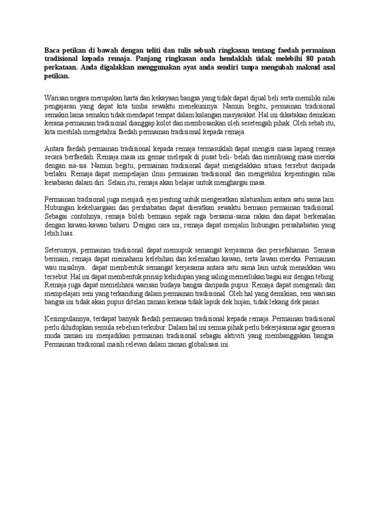 Ringkasan Pt3 Faedah Permainan Tradisional Kepada Remaja Pdf